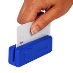 MagTek BT-90 Bluetooth MagStripe Reader - very portable, recharges from standard USB port using included cable.